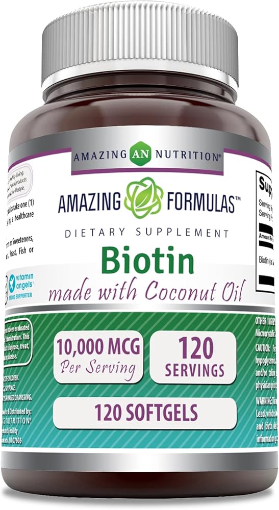 Biotina con Aceite de Coco Orgánico 10000mcg 120 Cápsulas Blandas | Piel y Cabello - Amazing Formulas