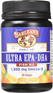 Barlean's Organic Oils Fresh Catch Aceite de pescado, Ultra EPA-DHA, sabor naranja 1300 mg, 60 cápsulas blandas, 1029, 60, 1