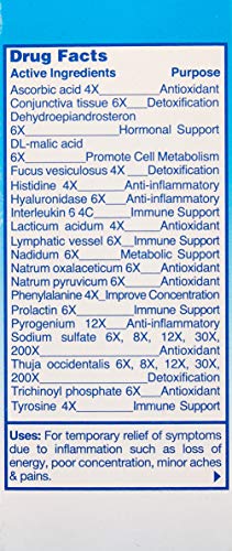 Descripción: 1.0 fl.Para el alivio temporal de los síntomas debido a la inflamación como la pérdida de energía concentración pobres dolores menores y doloresTomar 20 gotas en un poco de agua hasta 2 veces por día