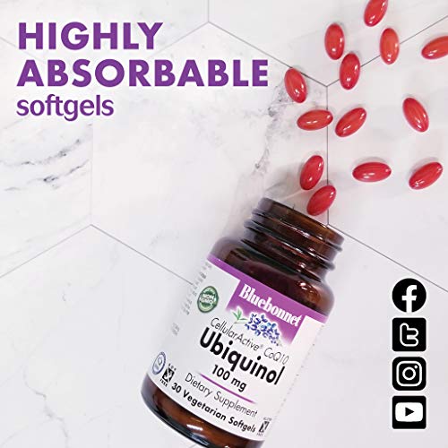 Bluebonnet Nutrition Cellular Active CoQ10 Ubiquinol 50 mg cápsulas vegetarianas, salud del corazón y salud celular, Ubiquinol de Kaneka, sin OMG, sin gluten, sin soja, sin leche, 30 cápsulas vegetarianas