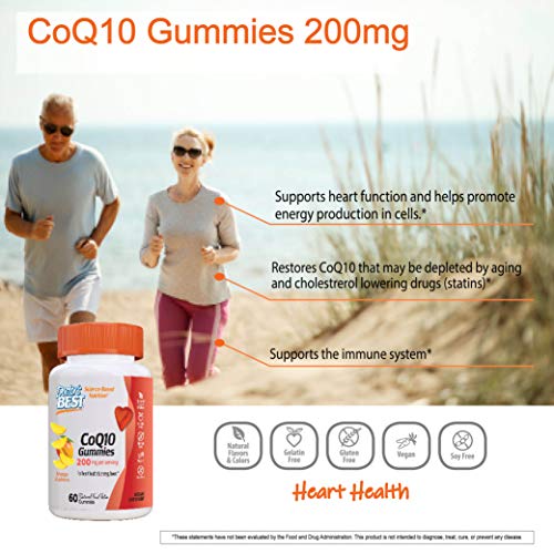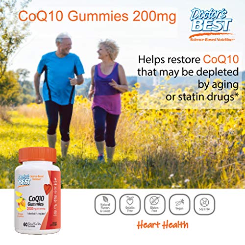 Doctor's Best Coq10 Gomitas 200 Mg, coenzima Q10 (Ubiquinona), apoya la salud del corazón, potenciar la energía, antioxidante potente, 60 unidades