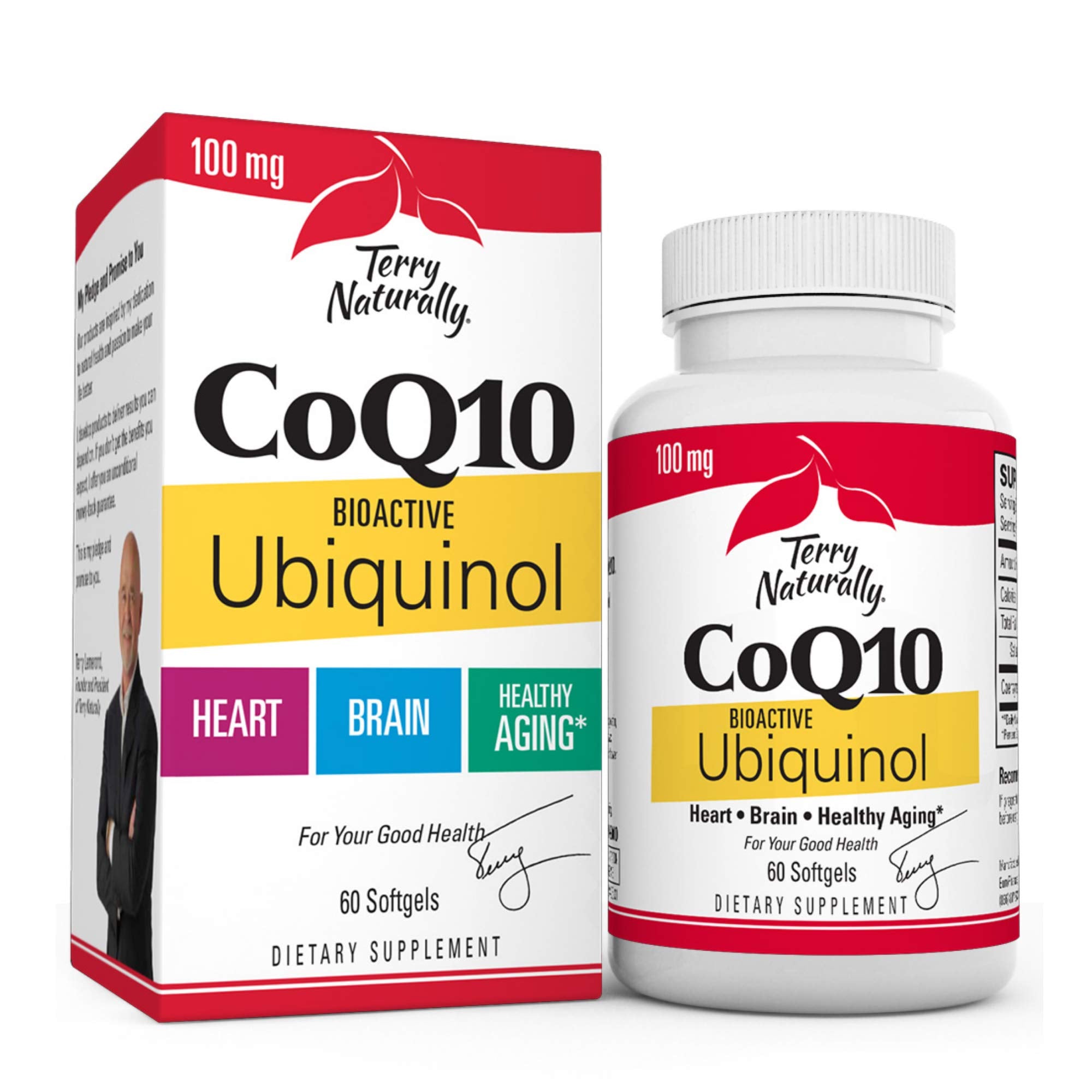 Terry Naturally Bioactive Ubiquinol CoQ10, 100 mg - 60 Capsules - Bioactive Antioxidant - Beneficial for Heart, Brain, Liver, Kidneys & Oral Health - Lowers Risk of Oxidative Stress - 60 Servings