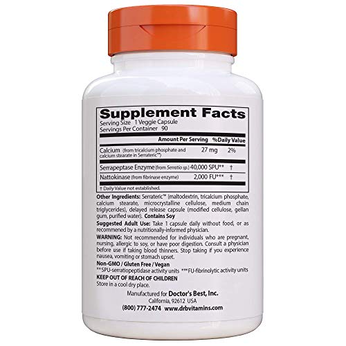 Doctor's Best Natto-Serra, sin OMG, vegano, sin gluten, 90 gorras para vegetales