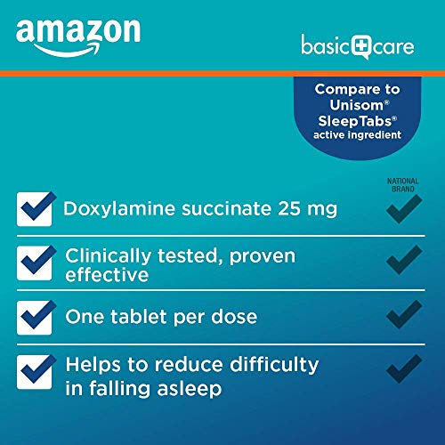 Amazon Basic Care tabletas de ayuda para dormir, tabletas succinadas de Doxylamine, 25 mg, ayuda para dormir durante la noche para ayudarte a dormir, 96 unidades