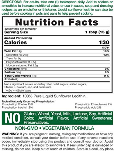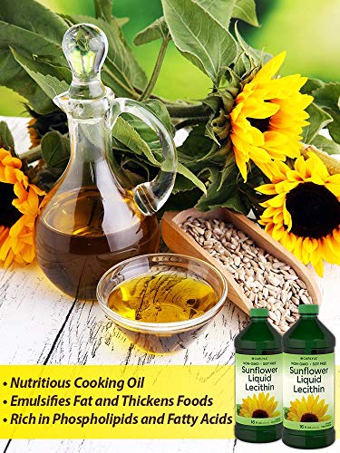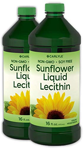 Aceite líquido de Lecitina de girasol de 16 oz | 2 unidades | vegano, vegetariano, sin OMG, sin soja, sin gluten | por Carlyle