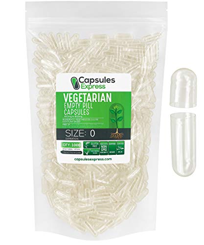 Cápsulas Express, tamaño 0, cápsulas veganas vacías transparentes, Kosher y Halal, cápsula de píldora vegetariana/vegetal, relleno de polvo DIY, Transparente, 1000