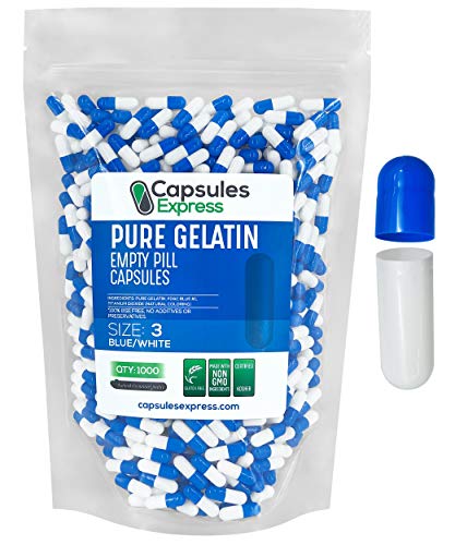 Express tamaÐo 3 càpsulas vacÕas de gelatina azul y blanca Kosher càpsula de pastilla de gelatina pura relleno de polvo DIY 1000