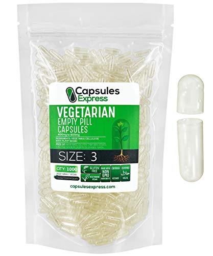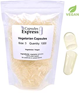 Cápsulas Express, tamaño 3, cápsulas veganas vacías transparentes, 1000 unidades, Kosher y Halal, cápsula de píldora vegetariana/vegetal, relleno de polvo DIY