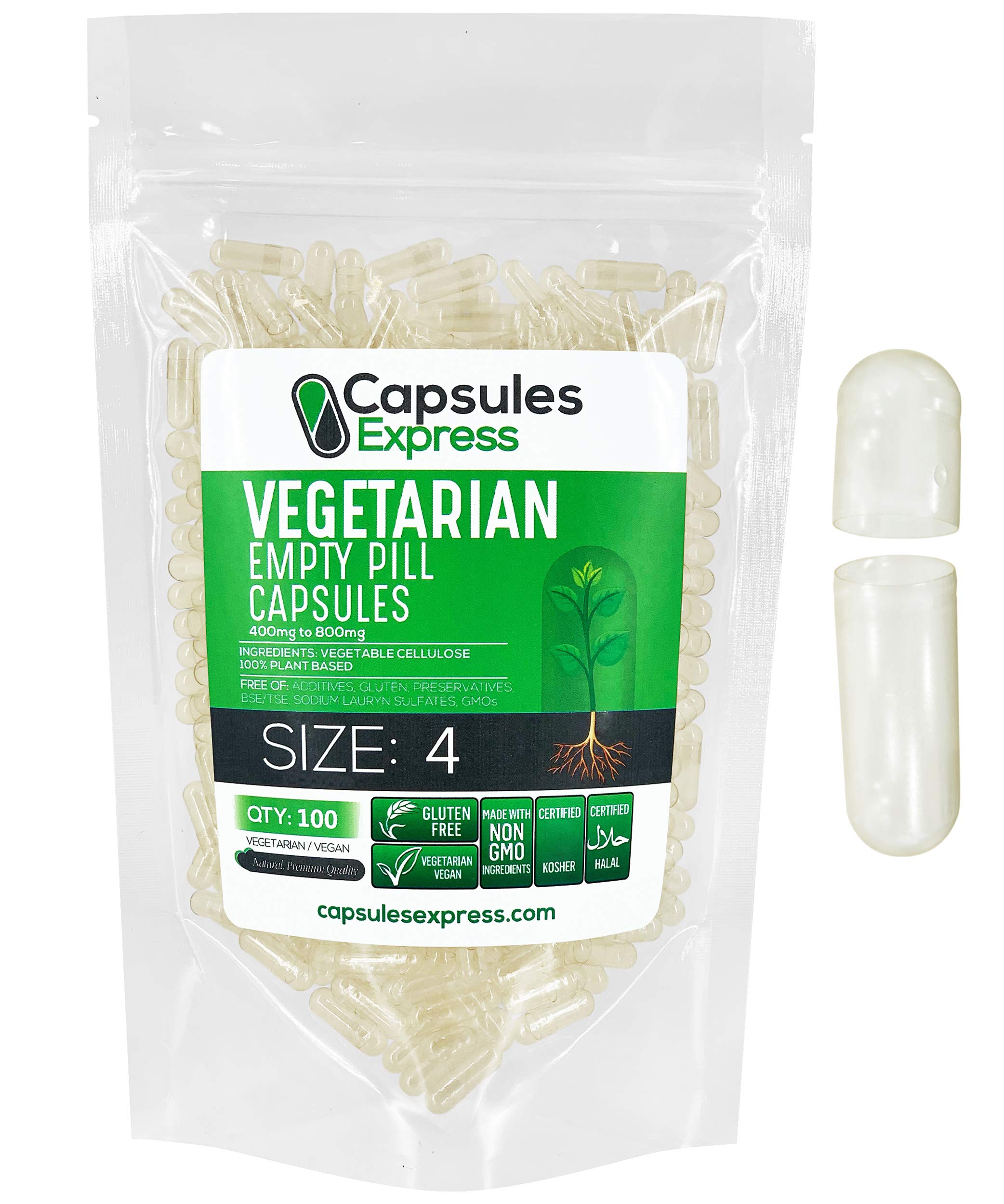 Cápsulas Express, tamaño 4, cápsulas veganas vacías transparentes, Kosher y Halal, cápsula de píldora vegetariana/vegetal, relleno de polvo DIY, 100, 100