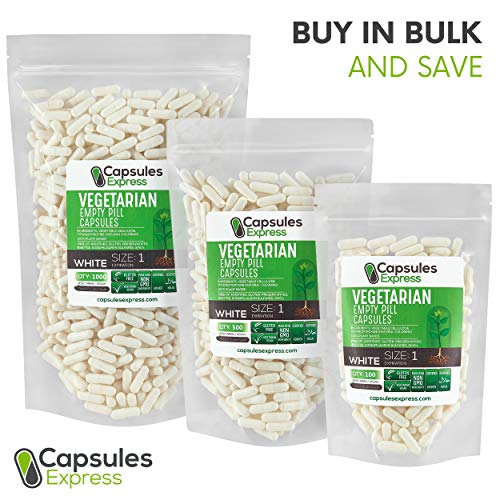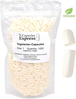 Capsules Express - Cápsulas vacías vegetarianas y vegetarianas (tamaño 1), color blanco, 1, Blanco, 1000