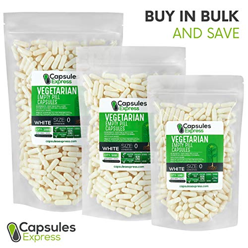 Capsules Express - Cápsulas vegetarianas vacías (tamaño 0), color blanco, 500