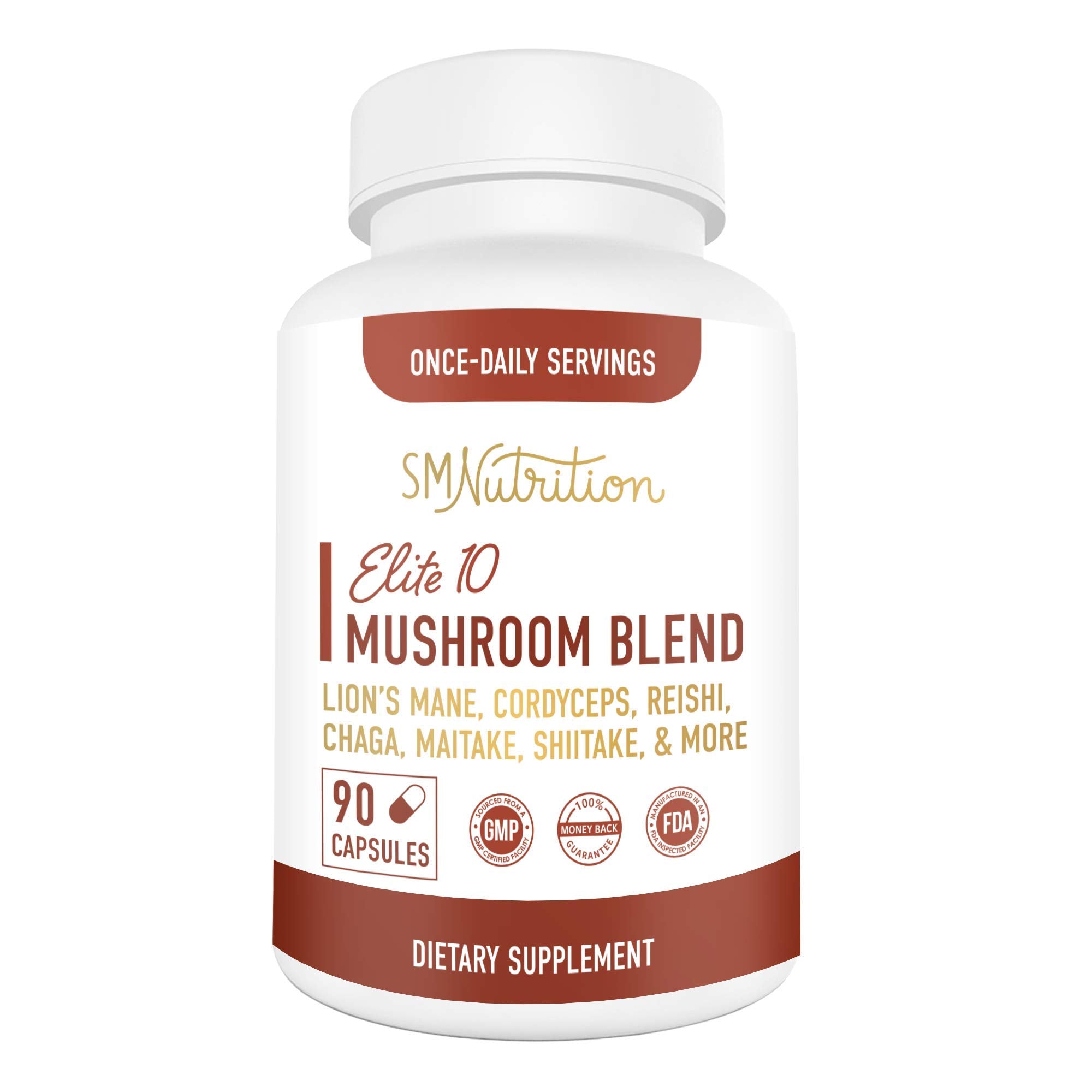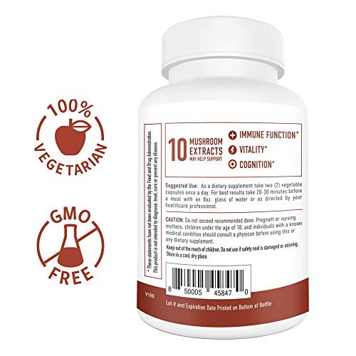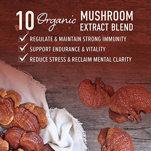 Elite 10 Mushroom Blend Supplement - 90 Capsules; 10 Mushroom Extract Immune Support; Organic Mushrooms: Lions Mane, Turkey Tail, Cordyceps, Reishi, Shiitake, Maitake, Chaga Mushroom Immunity Complex