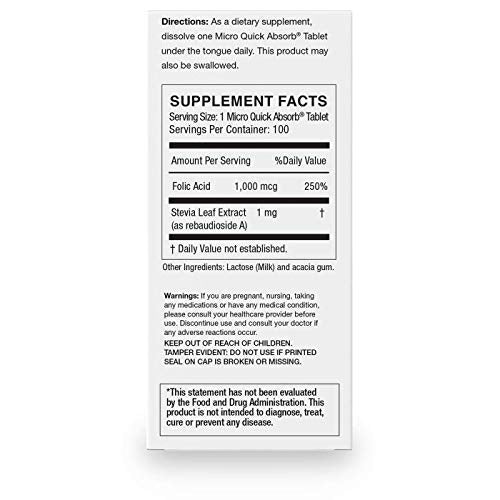 ácido fólico 1000 mcg sublingual Micro rápida absorber instantáneo disolver tabletas 3 Meses de Suministro