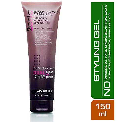 Giovanni 2chic - Gel de queratina brasileña y aceite de argán ultra fino y suave, Gel para peinar - 1 paquete, Ultra elegante (queratina brasileña + aceite marroquí)