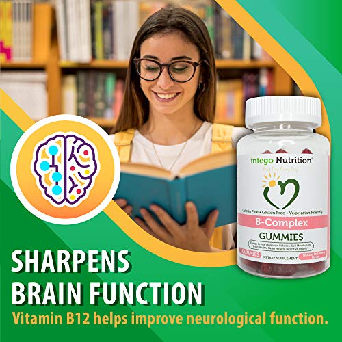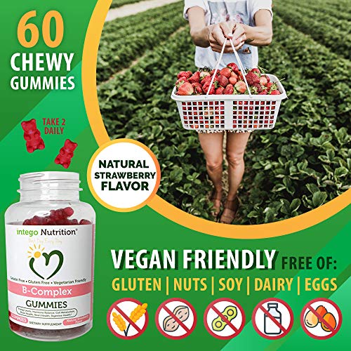 Gomitas masticables de vitamina B complejas (60 unidades) - Multivitamina para adultos - Promueve los niveles de energía, salud cardíaca | Intego Nutrition