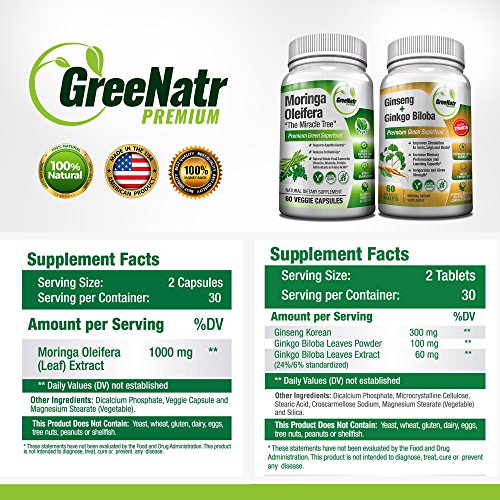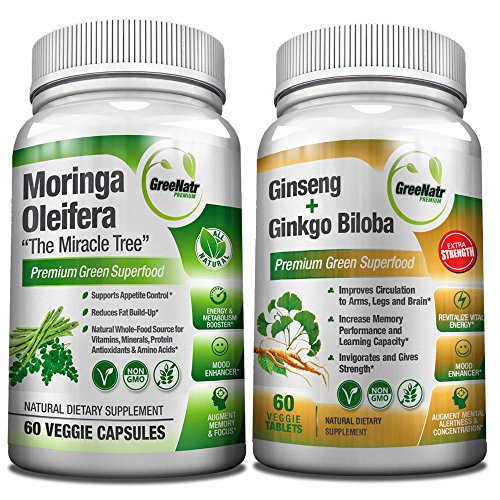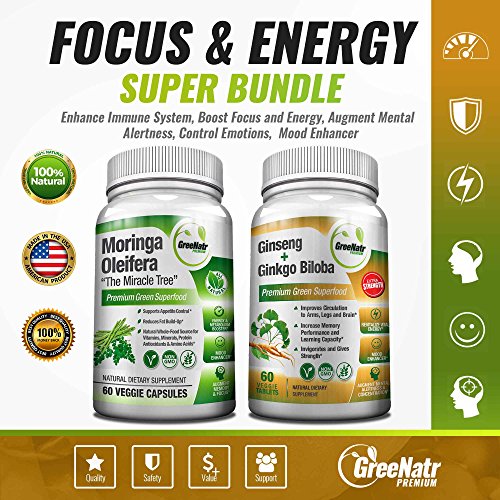 Ginseng + Ginkgo Biloba Tablets – Premium Non-GMO/Veggie Superfood – Traditional Energy Booster y Afilador de Cerebro 1
