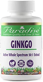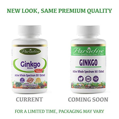 Paradise Herbs - Ginkgo Biloba - Puede ayudar a combatir la inflamación | Mejora la circulación y la salud cardíaca | Reduce los síntomas de trastornos psiquiátricos y demencia | Mejora la función cerebral, 601944777210, 1
