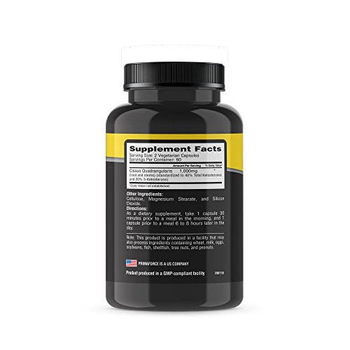 PrimaForce Suplemento Cissus 120 cápsulas de 1000 mg – Soporta pérdida de peso/reduce el dolor en las articulaciones/mejora la recuperación/fortalece el sistema inmunológico