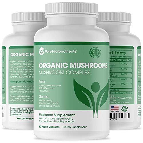 de hongos puros – Mane de leones Reishi Chaga Cordyceps y cola de Turquía – Refuerzo del sistema inmunológico premium y complejo cerebral nootrópico para energía memoria y enfoque 60 veganos micronutrientes puros 1